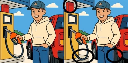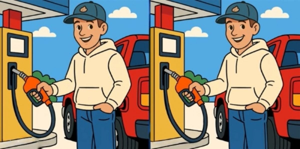 Vaadake tähelepanelikult kahte pilti mehest, kes täidab autot gaasiga. Esialgu võib tunduda, et pildid on täiesti samad, kuid tegelikult on nende vahel peidus kolm väikest erinevust.