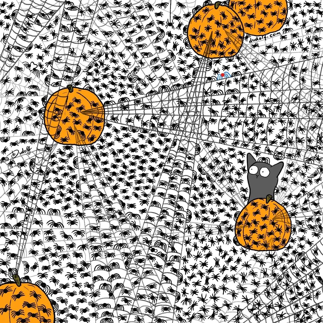 Proovige lahendada Internetis uskumatult populaarseks saanud mõistatus – peate kiiresti leidma kärbsed pildilt, kus on kõrvitsad ja palju ämblikke.