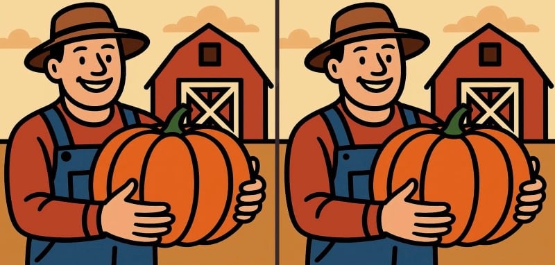 Seekord näete pilti taluniku ja kõrvitsaga. Esmapilgul langevad pildid täielikult kokku, kuid see pole nii – nende vahel on peidetud kolm erinevust.